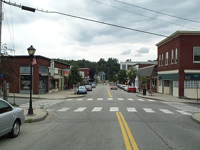 Downtown Lisbon Falls, an annexed village in Lisbon, Maine